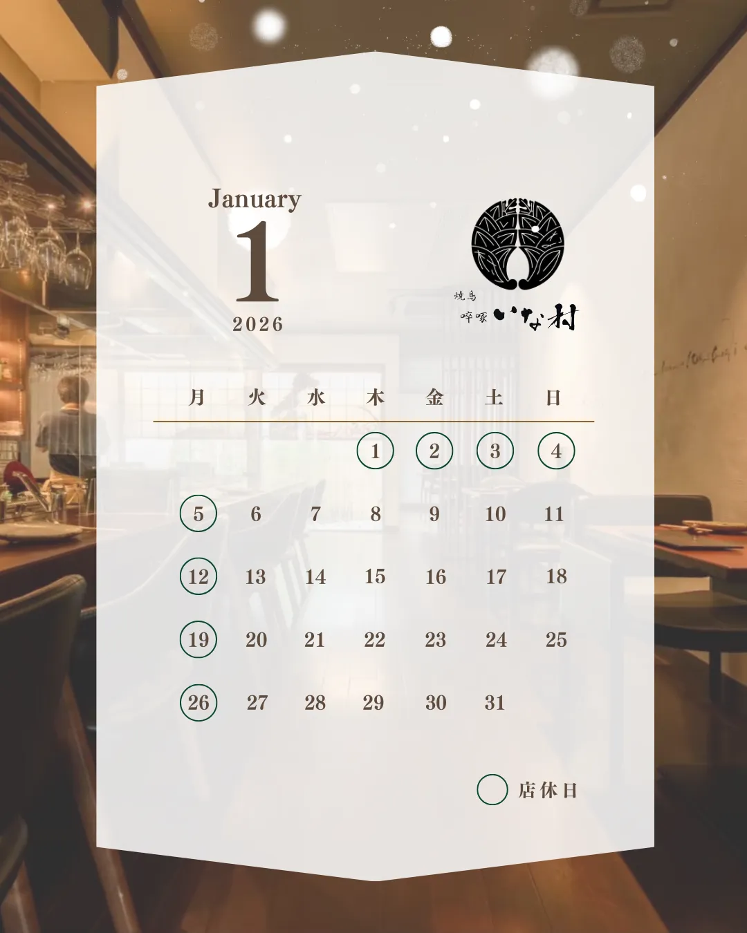【広島焼き鳥】啐啄いな村小町店1月の営業日のお知らせ